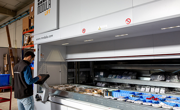Si la vente de machines augmentent, le matériel en stock augmente, tant pour la production de machines que pour les services d’assistance technique (SAT), ce qui génère souvent le besoin de disposer de pièces de rechange pour réparer les machines de manière immédiate. Pour éviter les retards, il était essentiel d’installer un entrepôt automatique, qui nous a permis d’accélérer la préparation des commandes. 100% des pièces de rechange sont stockées et organisées dans l’entrepôt « Modula » et, grâce à cela, nous sommes maintenant plus efficaces.