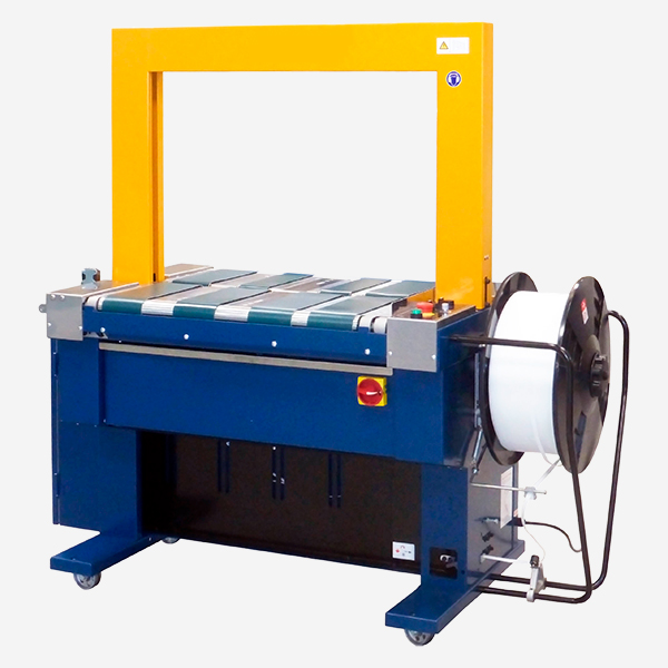 - Convoyeur motorisé : Déplace les produits automatiquement à travers la zone de cerclage, facilitant l’opération et réduisant le besoin d’intervention manuelle.