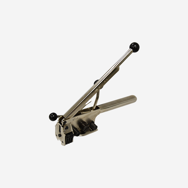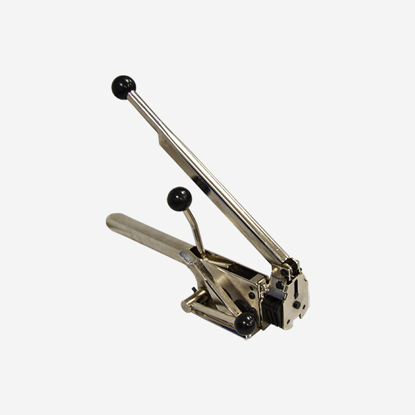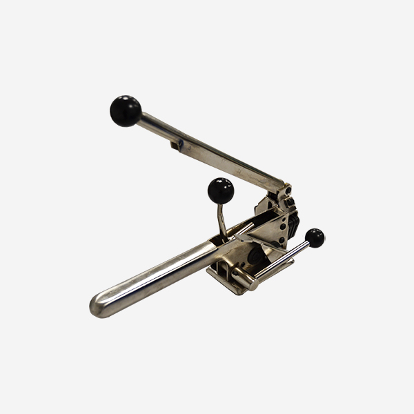 - Insérer l’agrafe une fois le feuillard bien positionné. Ensuite, actionner le levier jusqu’à obtenir la tension souhaitée pour le cerclage.