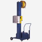 La machine dispose d’une lance télescopique pour passer le feuillard sous la palette.