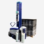 – Palette de 800 x 1200 x 1600 – Cycle standard avec banderoleuse sans serrage ni coupe et avec couverture appliquée manuellement : 2,35 min.